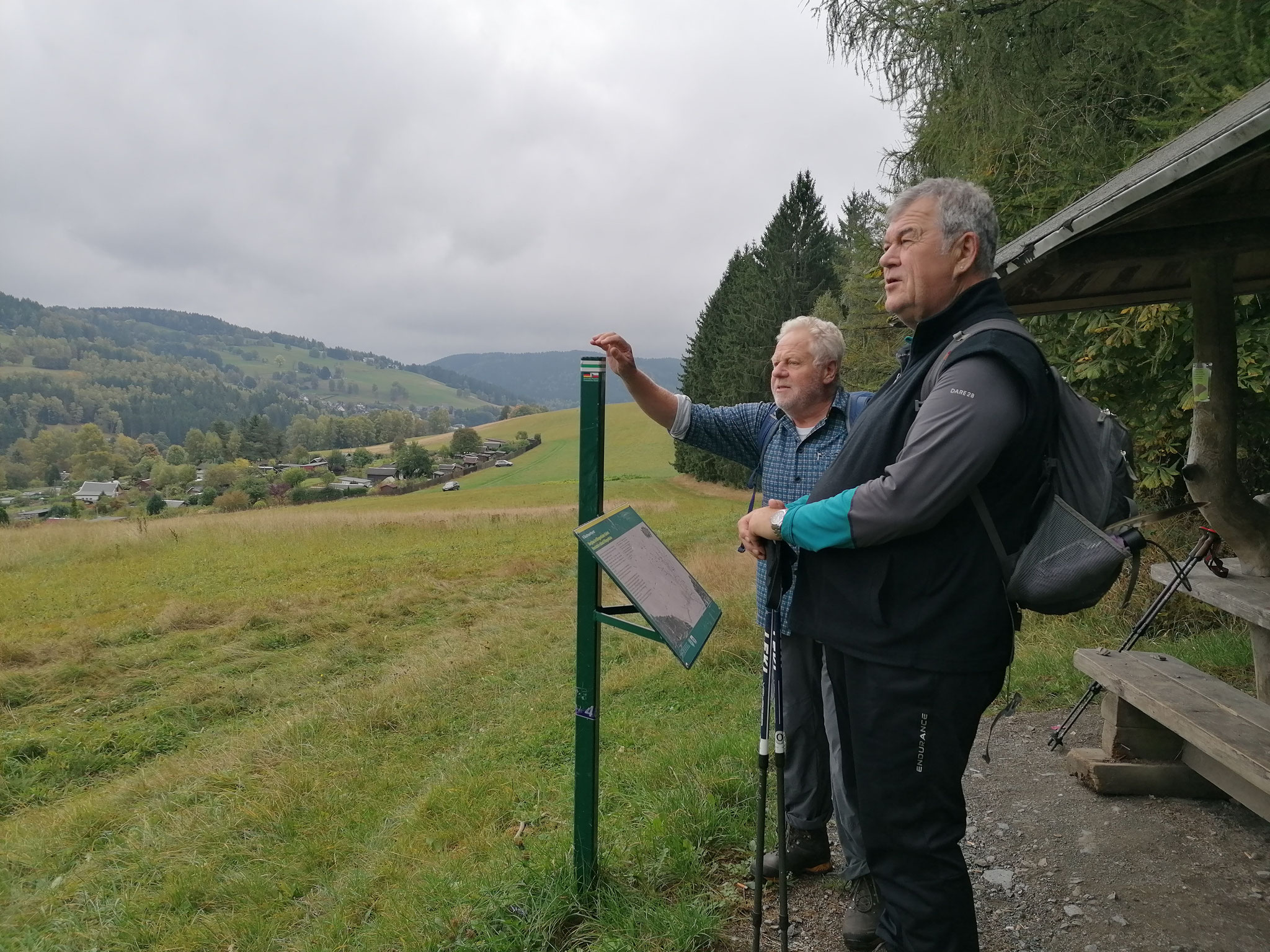 Am Sonntag, den 17. September 2023 wanderten sieben Wanderfreunde/innen von Wallenfels aus auf den Dörnach-Steig. Das warme Wetter und gleich den langen Anstieg haben wir gemeistert. Dann ging es bergab zur Wanderhütte Herrgottswinkel, wo wir eine schöne Einkehr mit Brotzeit machten.